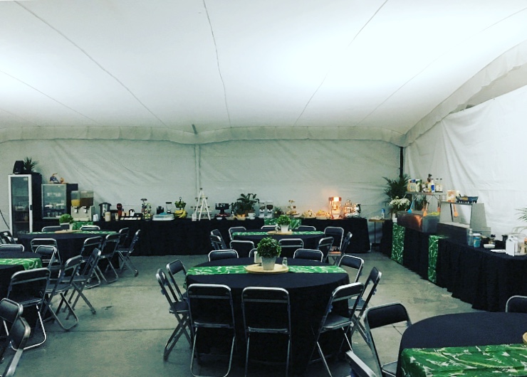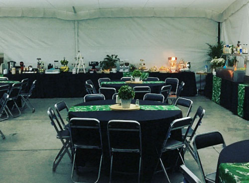 Montaje de camerinos: instalación de toldos, mobiliario, maparas, decoración, etc.